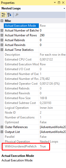 If you want to learn more about prefetching, I recommend reading Craig Freedman’s blog post, Paul White’s blog post, and Fabiano Amorim’s article. The rest of this blog post will focus on other areas of this execution plan.