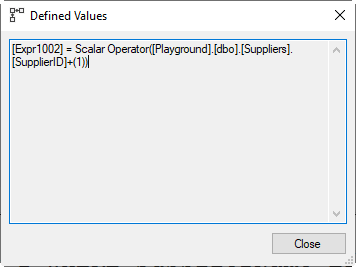 The first one, with SetPredicateType = Insert, reads “Scalar Operator(SupplierID = RaiseIfNullUpdate(SupplierID), SupplierName = RaiseIfNullUpdate(SupplierName))”. This is the predicate used when the Action Column indicates that an insert is needed. An insert obviously has to supply data for all columns, and that’s what this expression does. The RaiseIfNullUpdate is a special internal function that causes execution to stop, throw an error, and rollback the transaction if an attempt is made to insert a NULL in a column that doesn’t allow it.