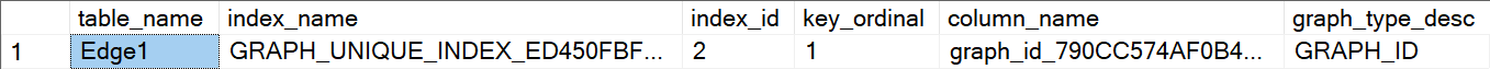 Yes, it does! In the example below, I first create an edge table without specifying any index, so that the default index will be auto-created. I query the system objects to see its name, and to double check that it is indeed on the graph_id column. I then drop this index (you’ll need to change the name if you follow along with the examples!), and then create a new index, this time as a clustered index, while using the $edge_id column to effectively create an index on graph_id, as the final query of the system objects shows: